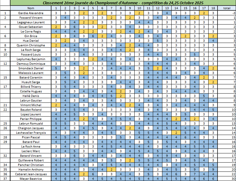 Avec un score de -3 c’est Alexandre Gardie qui remporte l’epreuve du weekend et qui prend la tête de la Mytho Automne comptant pour le Challenge Automne/Hiver.