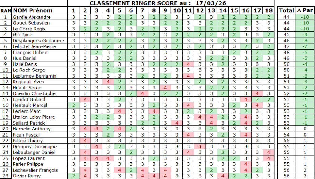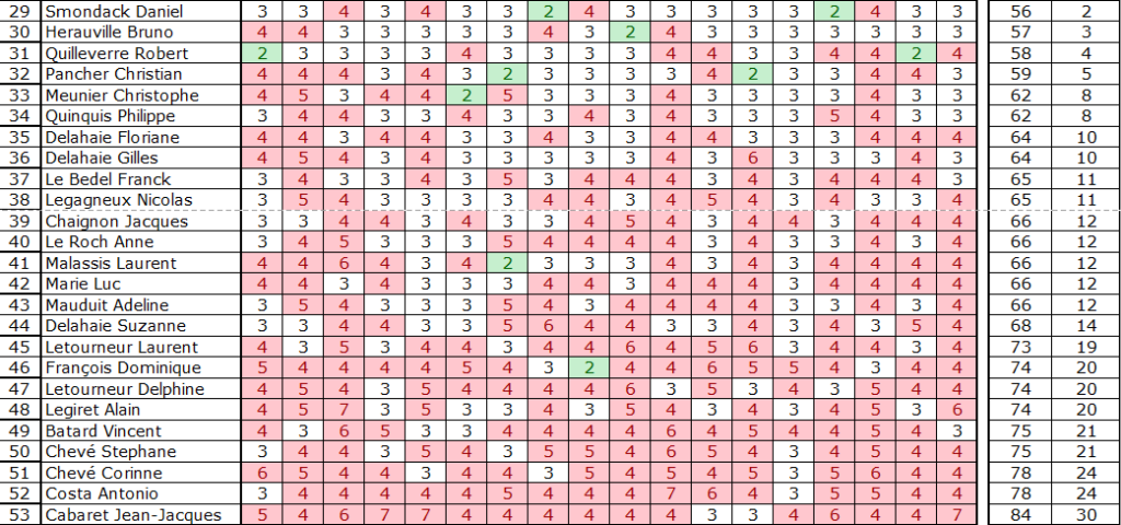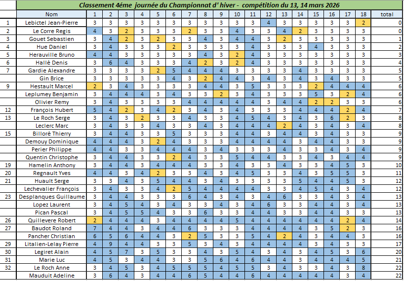 Au classement final La Mytho Hiver, ils sont 3 à se partager la tête avec un cumul sur les 4 journées de -10 : Gardie Alexandre, Gouet Sebastien & Le Corre Regis.